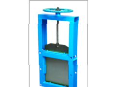 主要由框架、闸板、丝杆、螺母等零件构成,用手转动手轮使丝杆带着丝杆螺母和闸板沿水平方向往复运动,达到闸门的启闭目的。